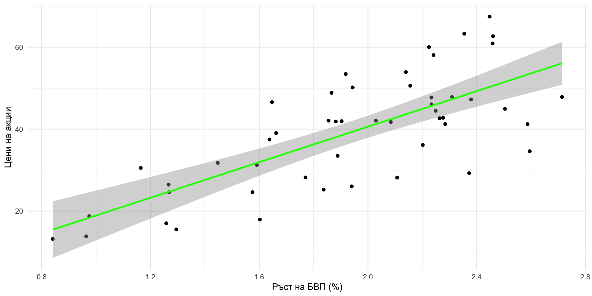 - Цени на акциите и икономически показатели: Корелацията между макроикономически показатели (като темпове на растеж на БВП) и цените на акциите може да ръководи инвестиционните стратегии.