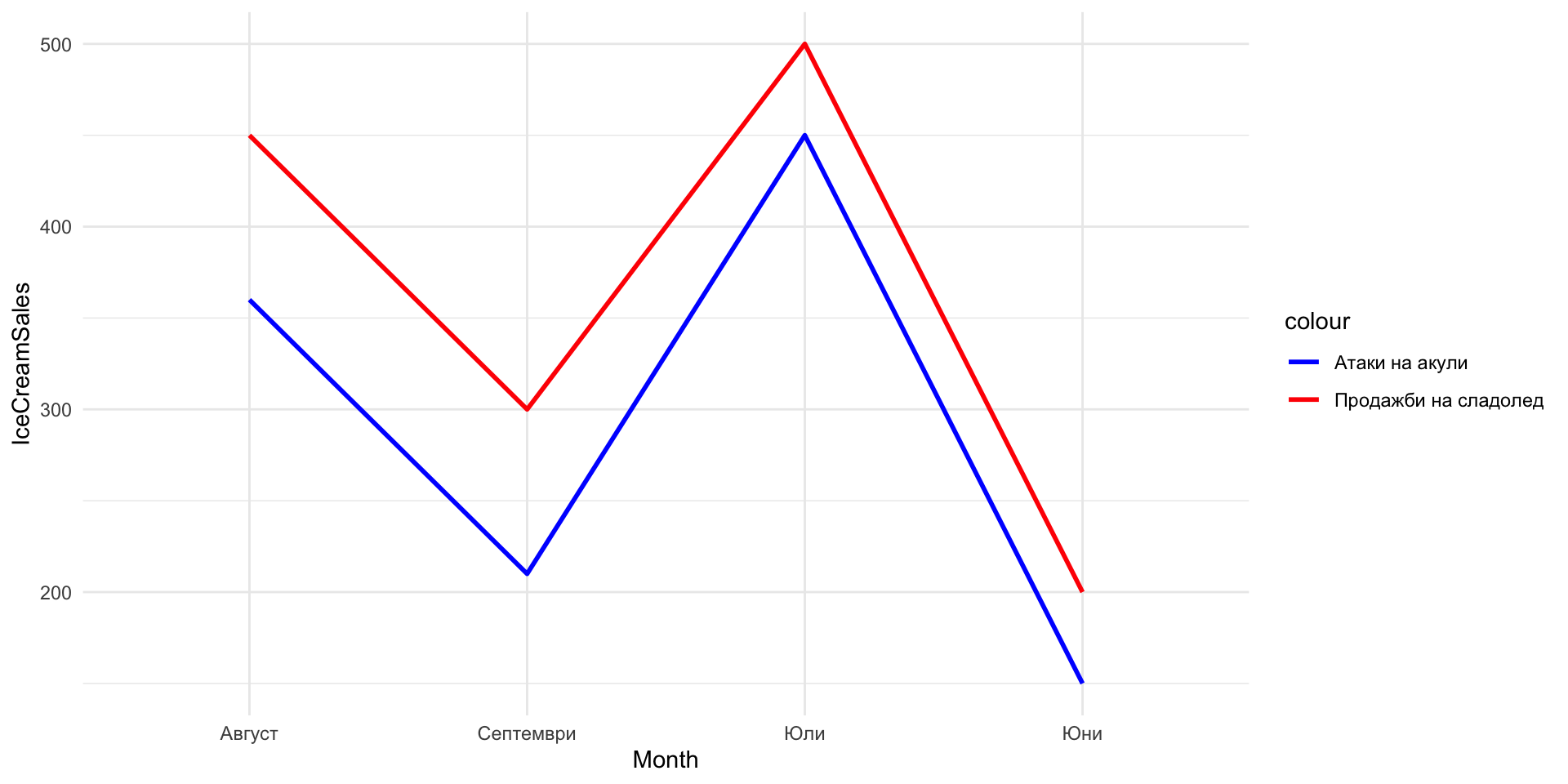 - Продажби на сладолед и атаки на акули