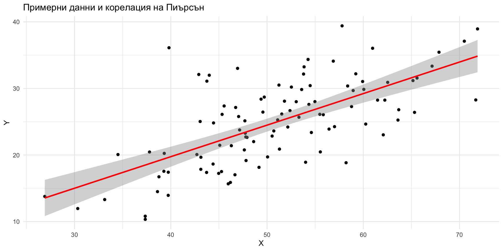 - Корелацията измерва линейната връзка между две променливи.