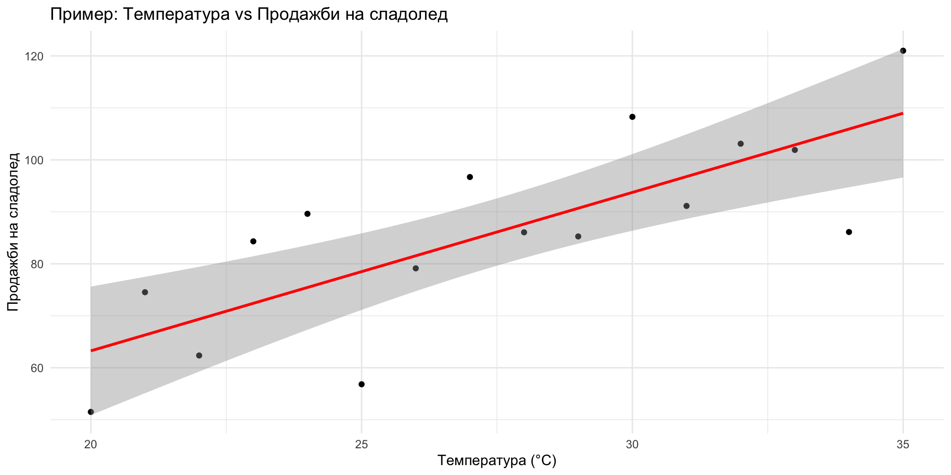 - Пример: С повишаване на температурата продажбите на сладолед също се увеличават.